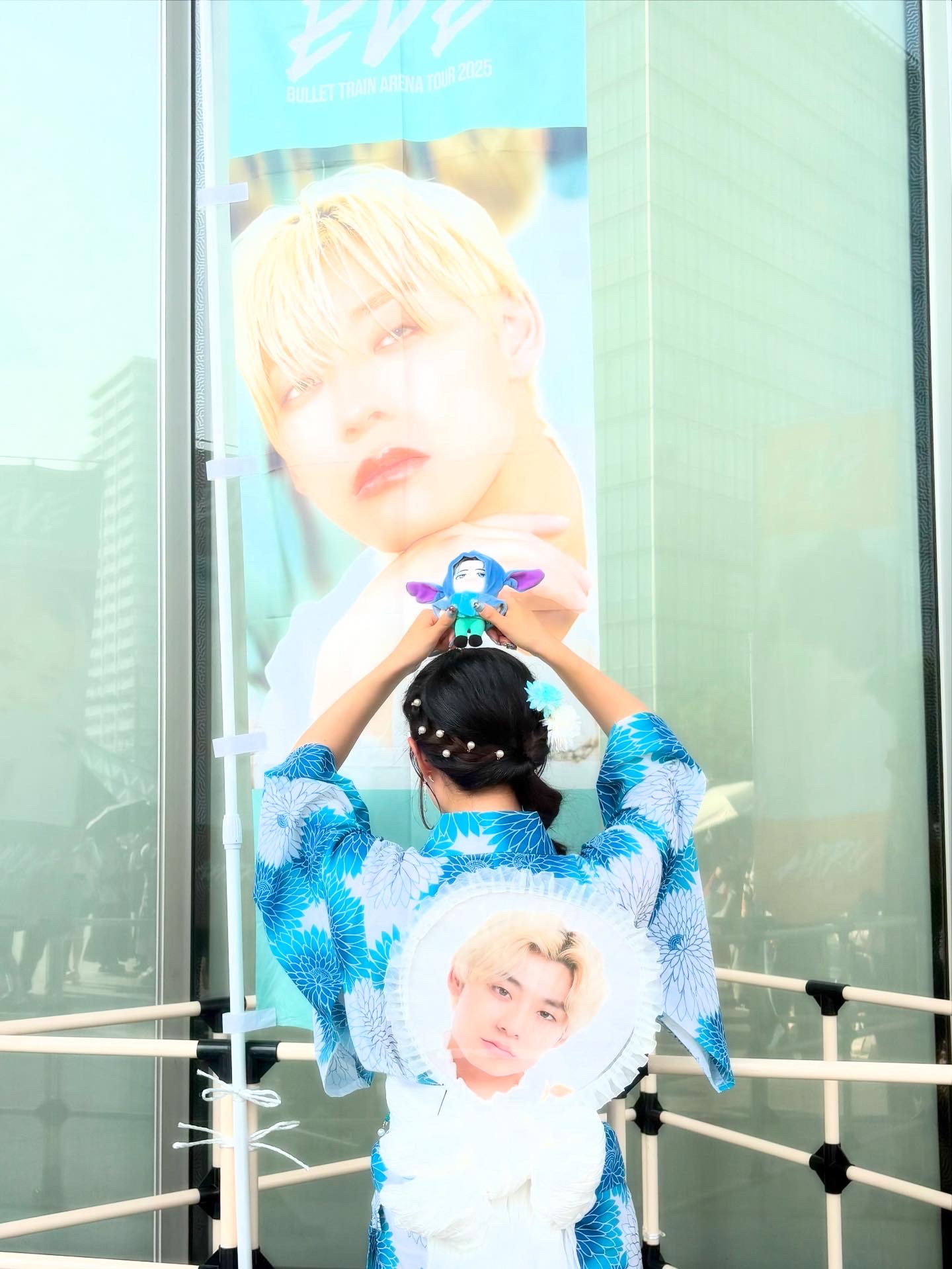 下の写真左は東京ドームでSnowMan岩本照(と全身黄色の佐藤。)と、写真右は横浜Kアリーナで超特急アロハ(と自分で浴衣を着つけたが暑過ぎた佐藤。)と📷 メンバーカラーコーデ大事…(^^)/